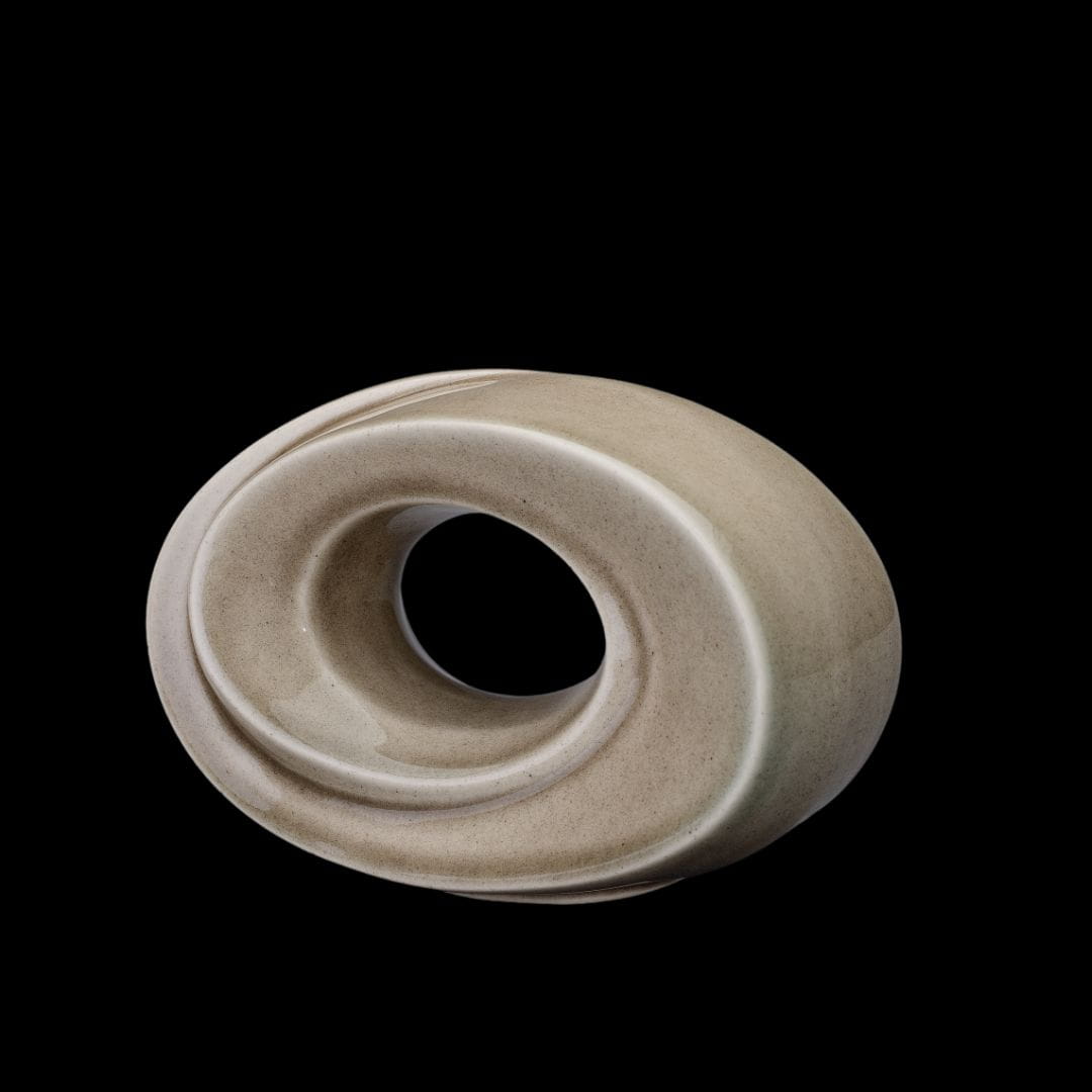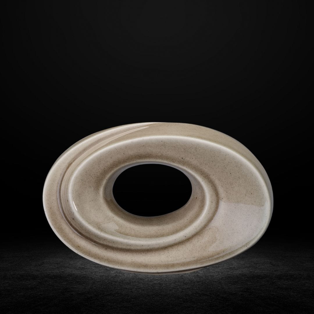 The "Infinity Ring" urn is an excellent choice for those seeking an item that not only serves a practical purpose but also enriches its surroundings with symbolic depth and refined design. With its beige-grey sheen and elegant finish, it embodies a harmonious fusion of art and remembrance, imbuing the act of honoring a loved one with exceptional character.