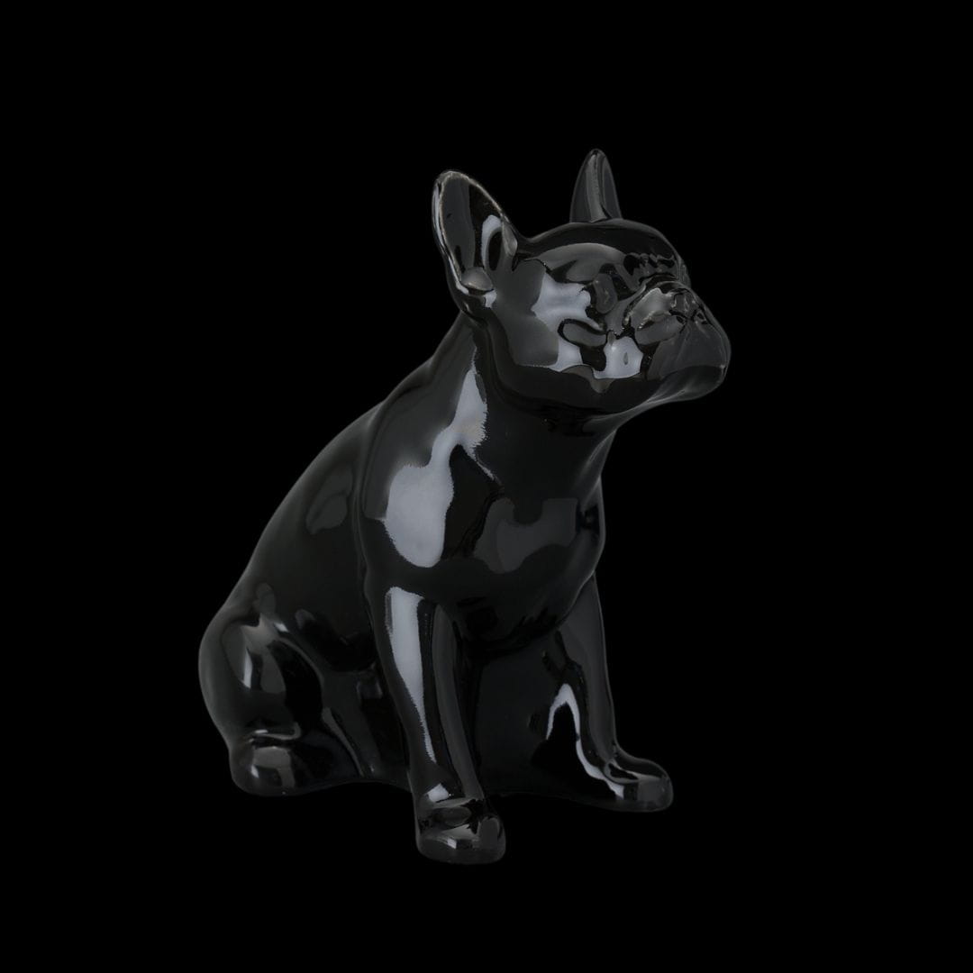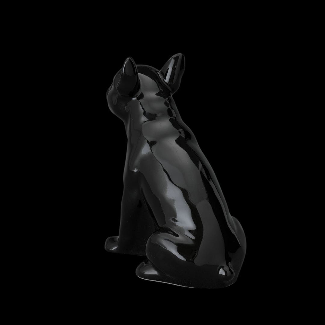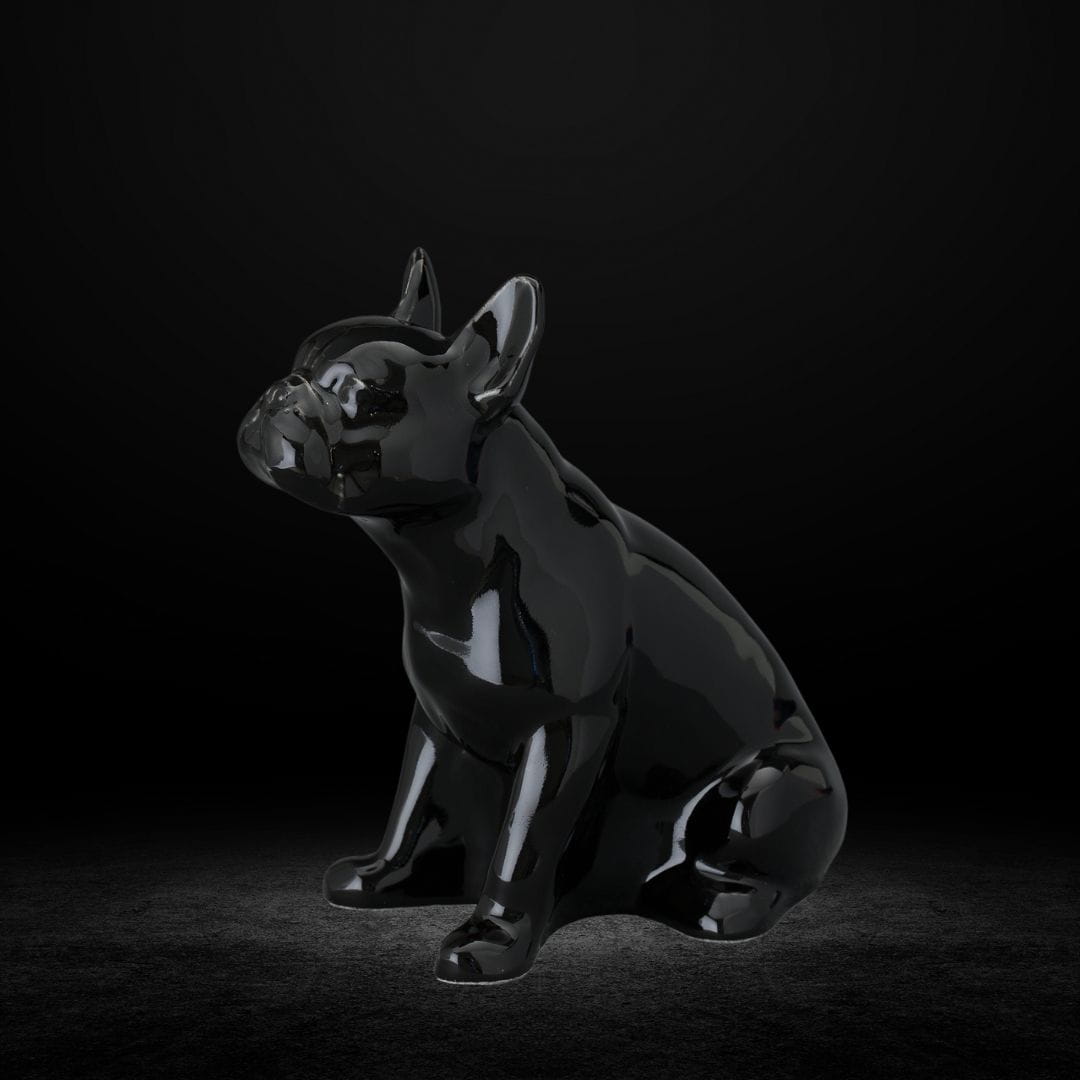 The urn is made of high-quality ceramic and is covered with a glossy black glaze, which gives it a modern and elegant look. The black finish highlights the natural beauty of the ceramic, giving the urn a subtle, yet effective shine. The sculpture shows a bulldog in a sitting position, with large, expressive eyes, rounded ears and delicate wrinkles on the muzzle, which gives the urn an authentic feel.