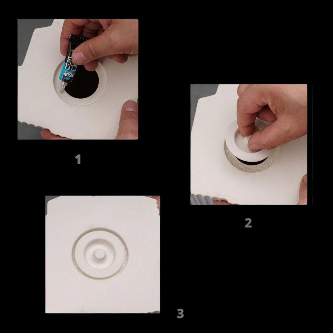 Use a special glue for ceramic glue and place the urn upside down. If it is filled with ash, it should already be in this position. Make sure that the surfaces to be glued are clean, dry and free of dust. Spread the glue evenly, covering the entire edge. Carefully place the cap and rotate it 90°. Center the cap so that it evenly covers the hole, leaving no gaps. Apply more glue to fill the space between the rim and the cap, then leave the urn in this position for 10-15 minutes. You can place the urn in a box to make it stable. After 10 minutes, the glue will form a layer similar to silicone. The glue is no longer sticky and the urn can now be moved. We recommend leaving the urn in this position for at least 1-2 hours. The glue will completely harden in 4-8 hours, depending on circumstances such as temperature and humidity