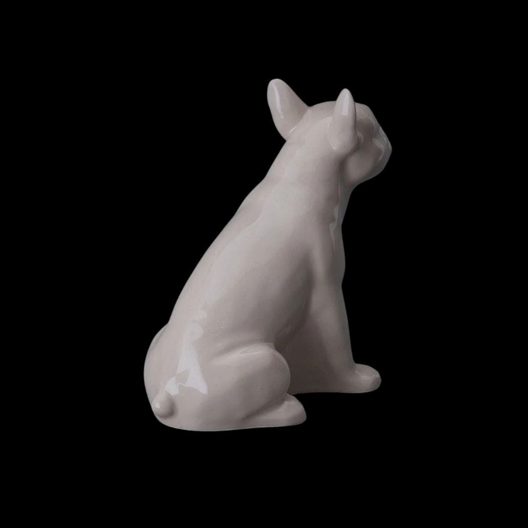 The urn is made of high-quality ceramic and is covered with a clear, shiny glaze, which gives it a modern and elegant look. The clear finish highlights the natural beauty of the ceramic, giving the urn a subtle, yet effective shine. The sculpture shows a bulldog in a sitting position, with large, expressive eyes, rounded ears and delicate wrinkles on the muzzle, which gives the urn an authentic feel.