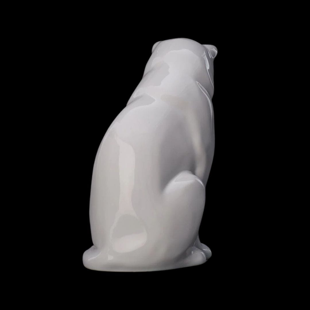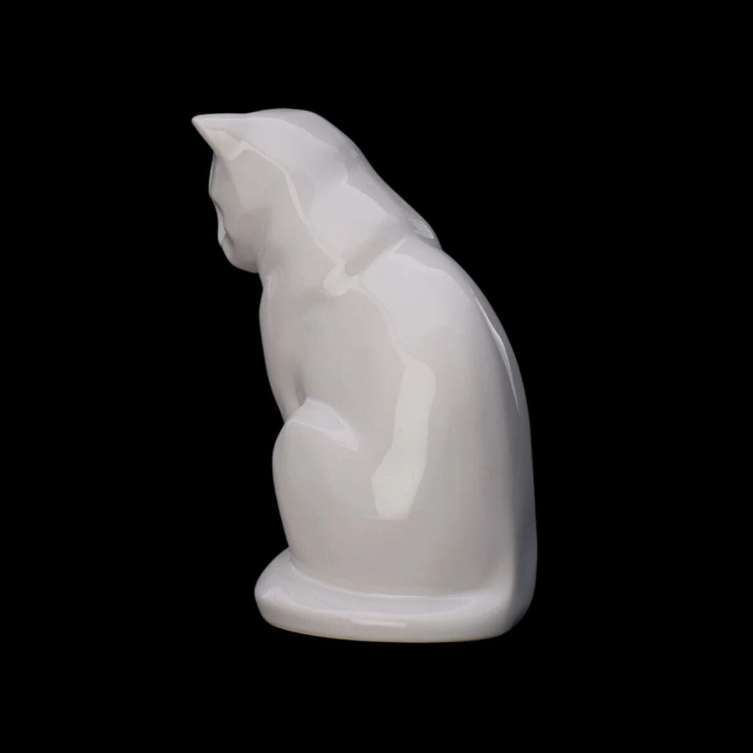 The cremation urn depicting a seated cat is an elegant and sophisticated piece that combines deep symbolism with excellent craftsmanship. Made of glossy white ceramic, it exudes dignity and serenity, perfectly capturing the spirit of remembering a beloved pet.