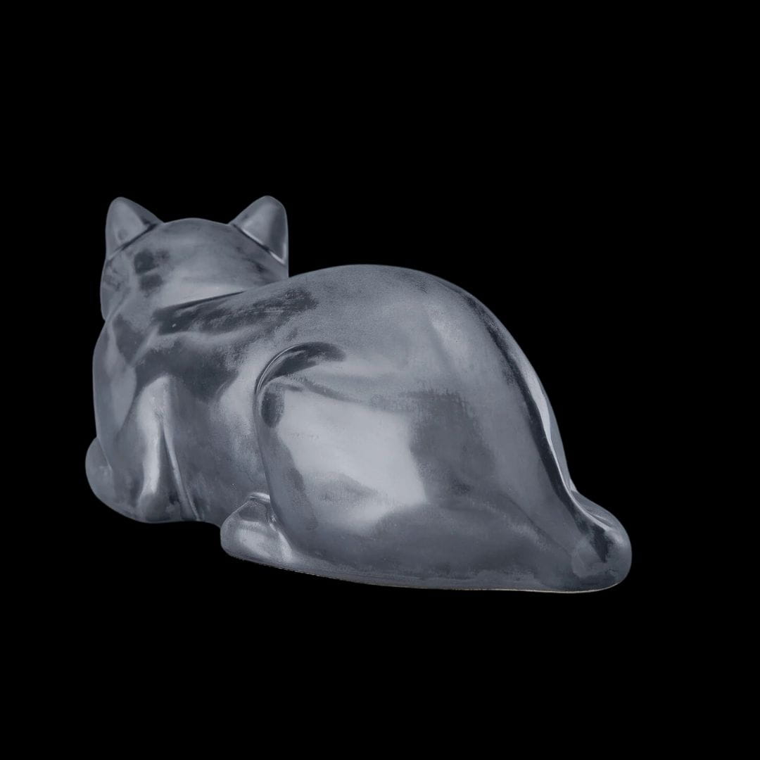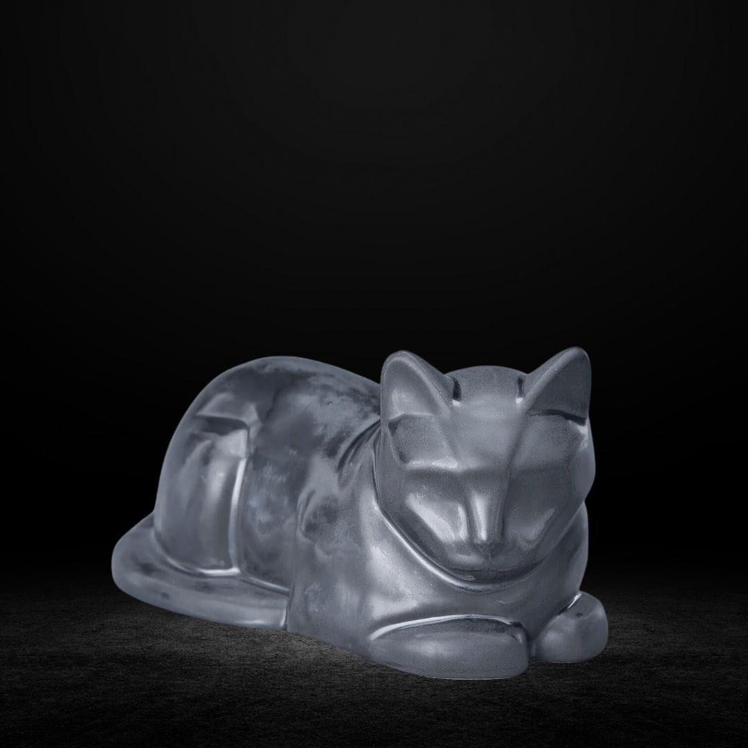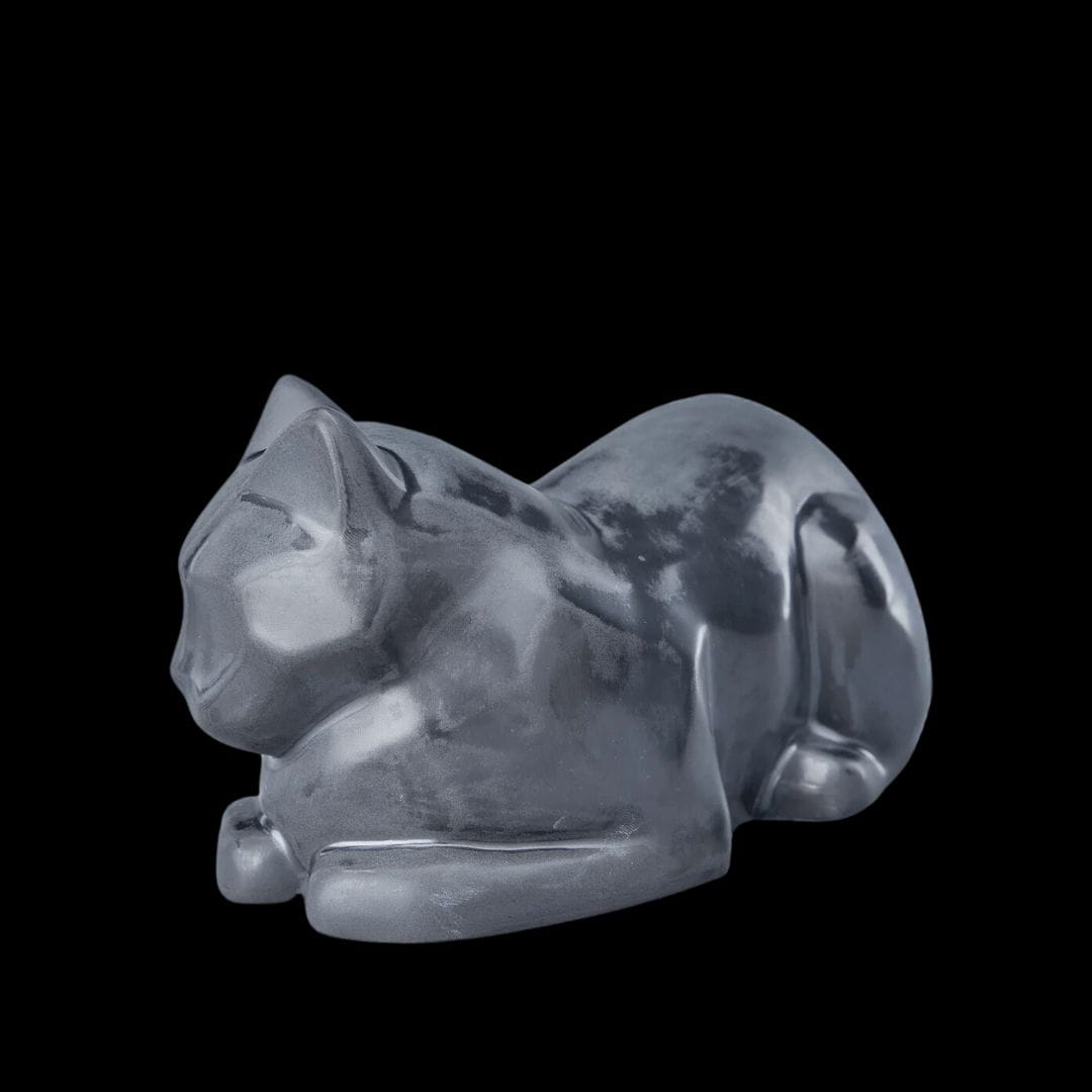 Ceramic urn for animals Cat lying grey dark rubbed matte