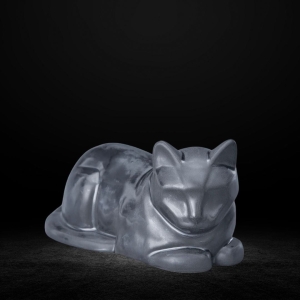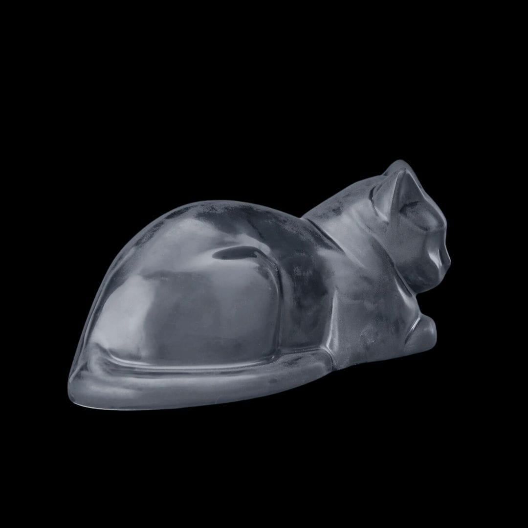 The urn depicts a cat lying gracefully in a calm and peaceful position, with details faithfully capturing its natural proportions and delicate features. Clearly defined paws, softly contoured ears, and the serene expression on the cat’s face make this piece a beautiful tribute. Its harmonious lines and elegant silhouette highlight a minimalist and contemporary aesthetic.