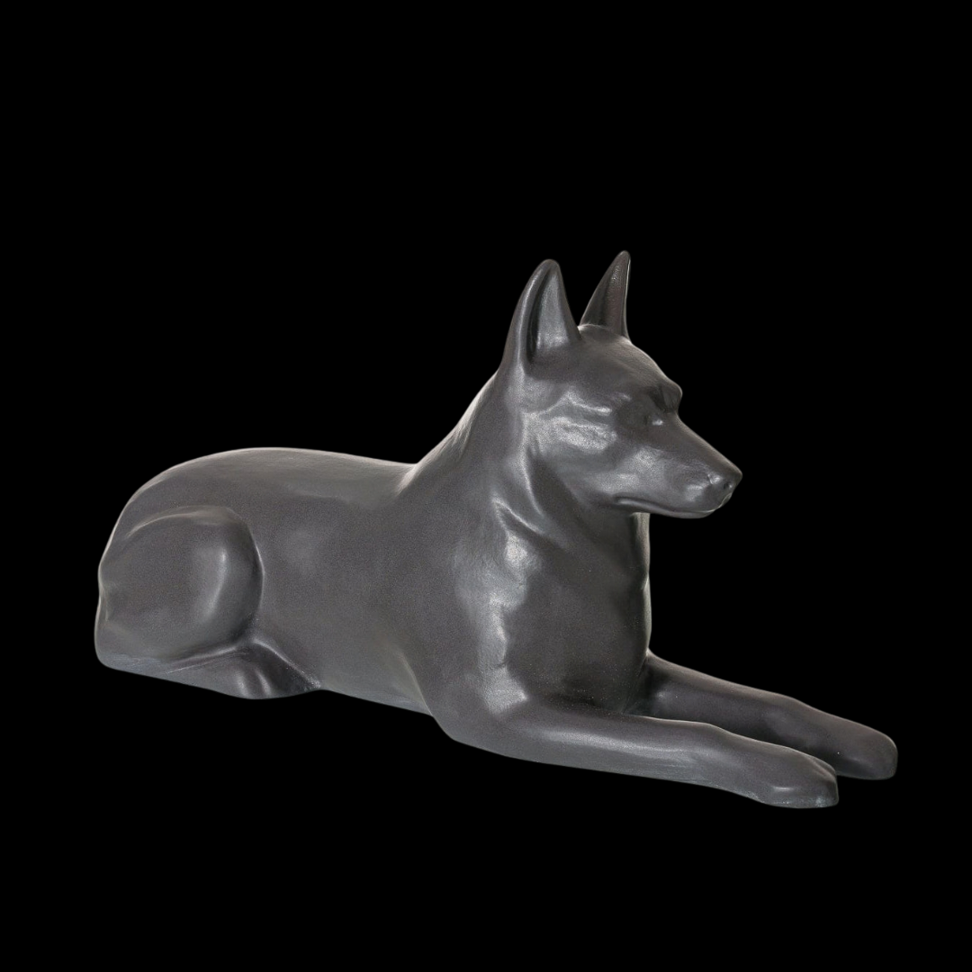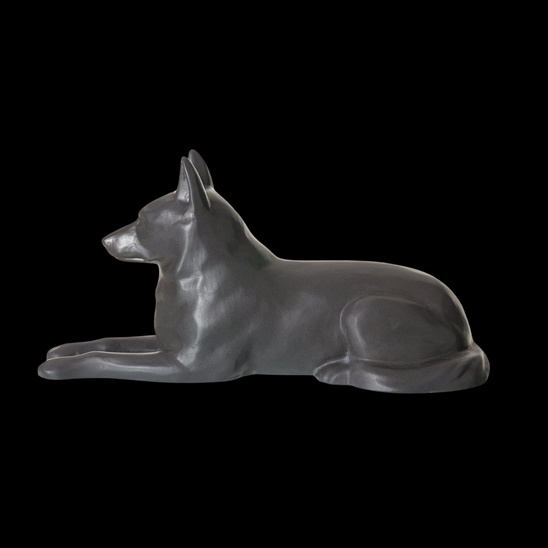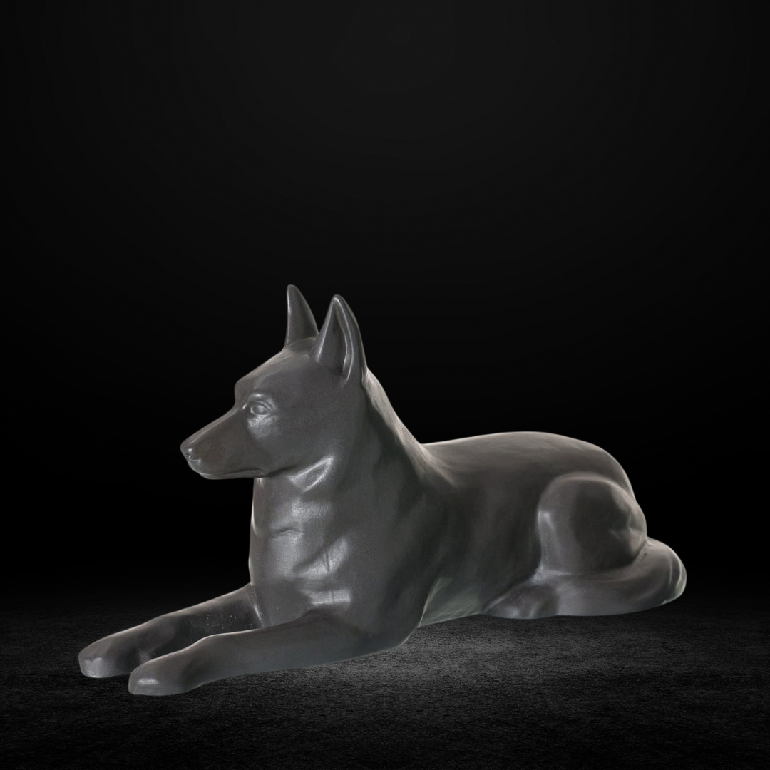 Sometimes simplicity expresses more than words ever could. This ceramic dog urn, shaped as a German Shepherd and finished in a refined matte grey glaze, offers a subtle and balanced way to honor a beloved canine companion. Its calm color palette and realistic sculptural form create a harmonious presence within any home.