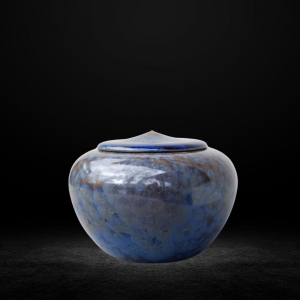 Lumea, Ceramic urn for animals small, navy blue and brown crystal glaze