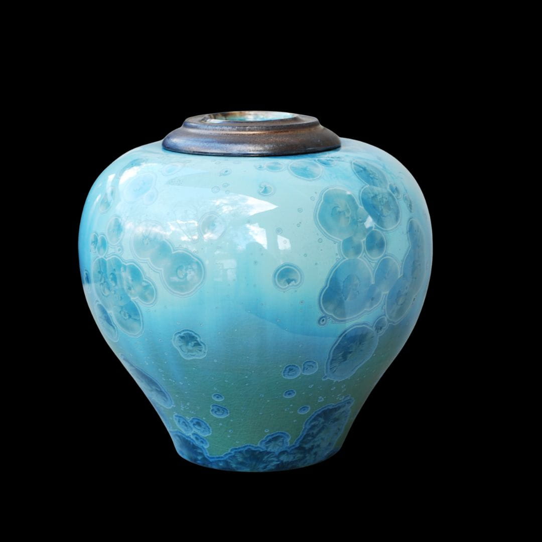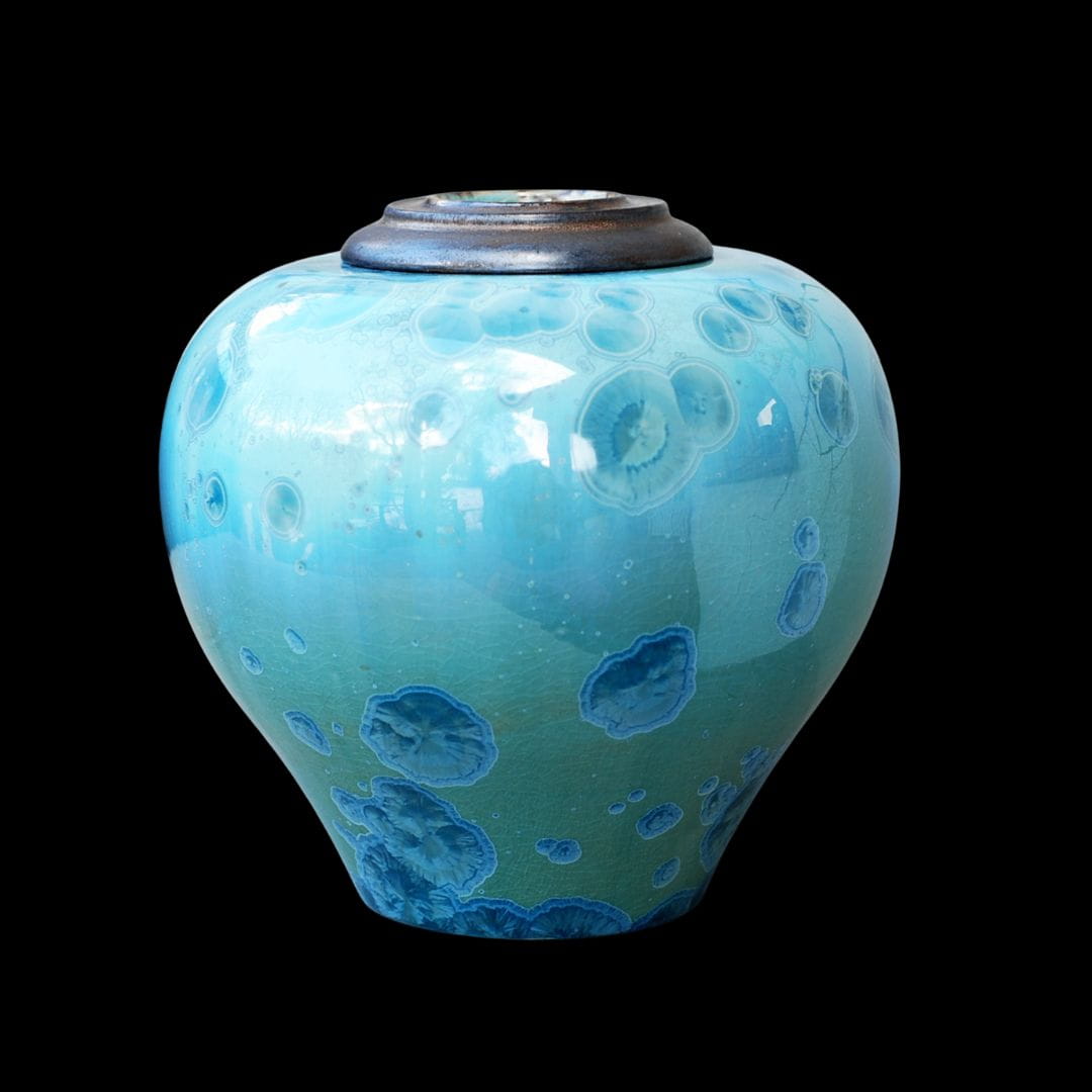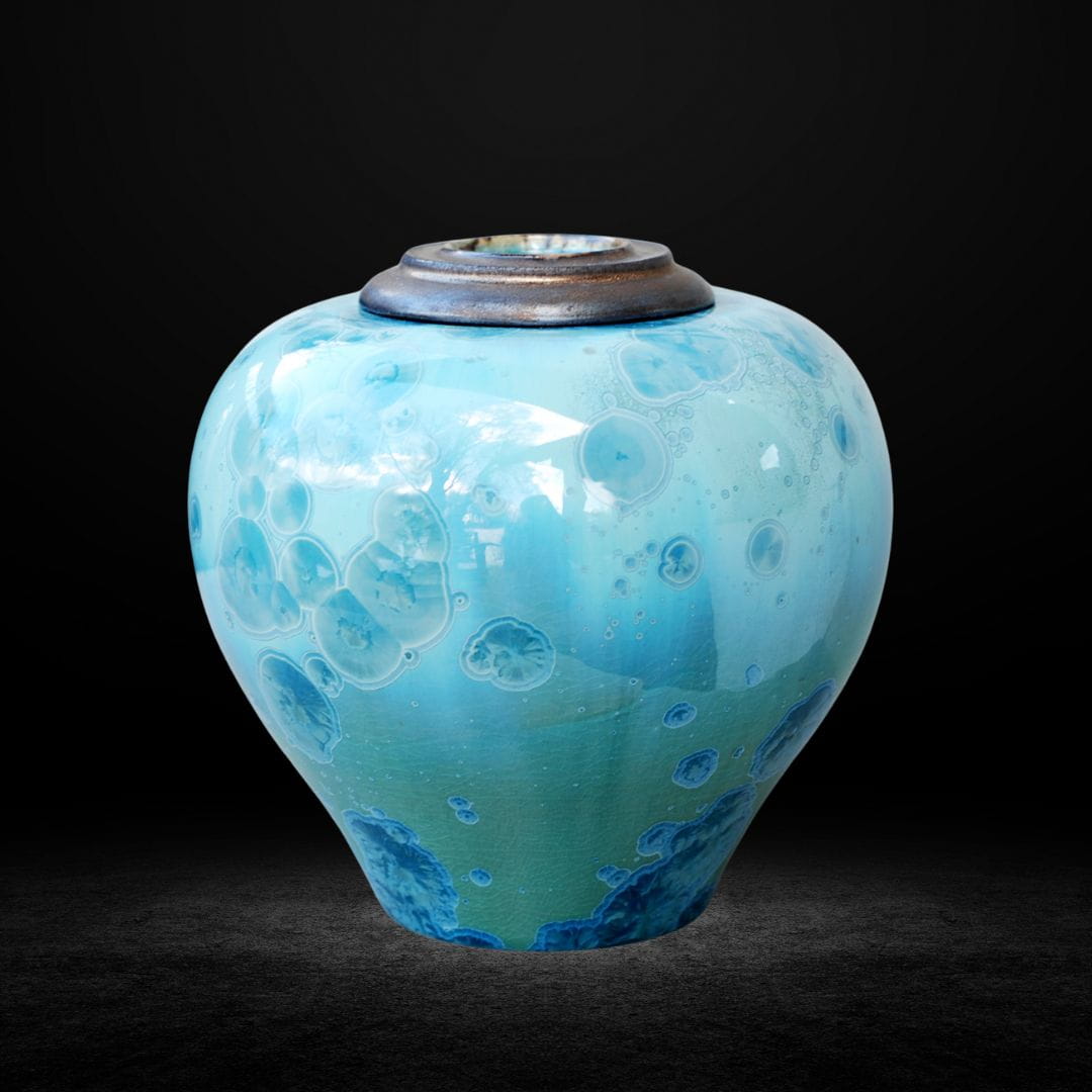 Lumea, Large ceramic urn, blue-azure crystal glaze